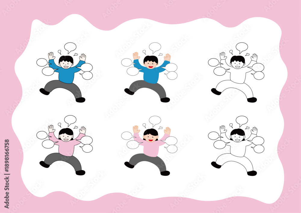 シンプルで親しみやすいタッチで表現された精神疾患による高揚感や多弁な様子を示す男女|医療・福祉・カウンセリング Stock ベクターをダウンロードし、Adobe Stock で類似のベクターを探しましょう。