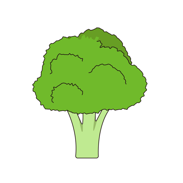 シンプルで清潔感のあるブロッコリーのイラストです。食材や野菜を扱うデザイン、健康・栄養に関する資料、食育コンテンツやレシピの挿絵など幅広く活用できます。