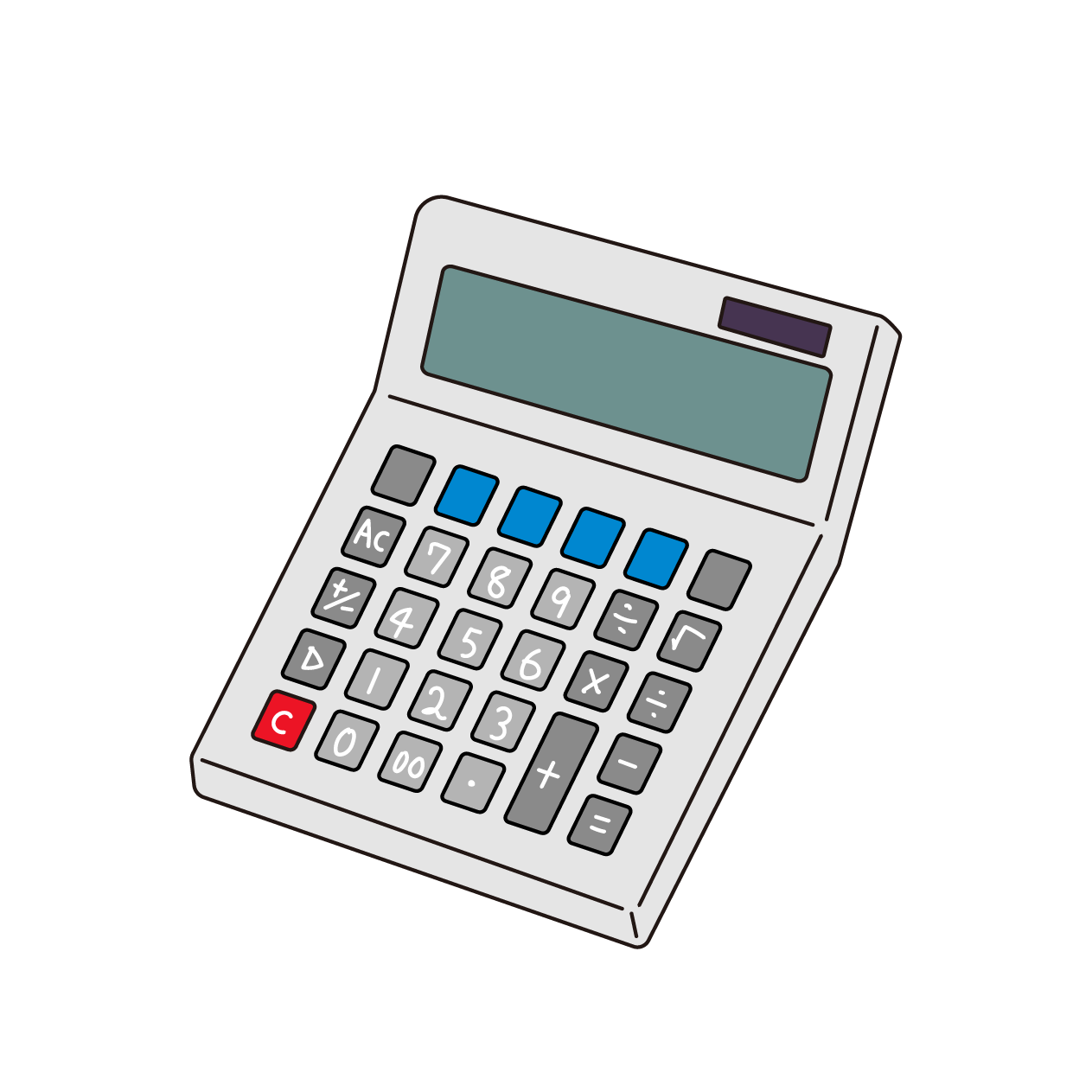 電子機器のイラスト電卓(でんたく/計算機/カルキュレーター/Calculator)は、数字入力や集計作業に欠かせない卓上型の計算ツールです。事務ワークや会計処理、デスクでの手元作業など幅広い場面で使われる作業機器(計算デバイス/集計器具)として、ビジネスや日常の数字管理をサポートします。
