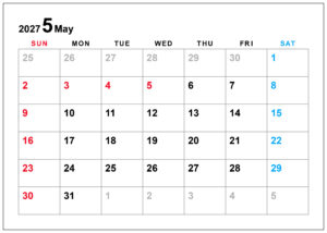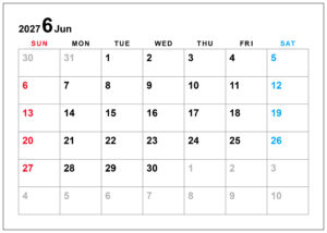 2027年(令和9年)の1月から12月までを1枚に収めた、シンプルで視認性の高い年間カレンダー素材です。日曜始まりのレイアウトを採用し、各月が等間隔のグリッドで構成されているため、年間の流れを一目で把握するのに最適です。ビジネスシーンでのプロジェクト管理や、教育機関での年間行事予定、個人のライフプランニングなど、幅広い用途でご活用いただけます。清潔感のある配色で、どのような媒体にも馴染みやすいデザインです。