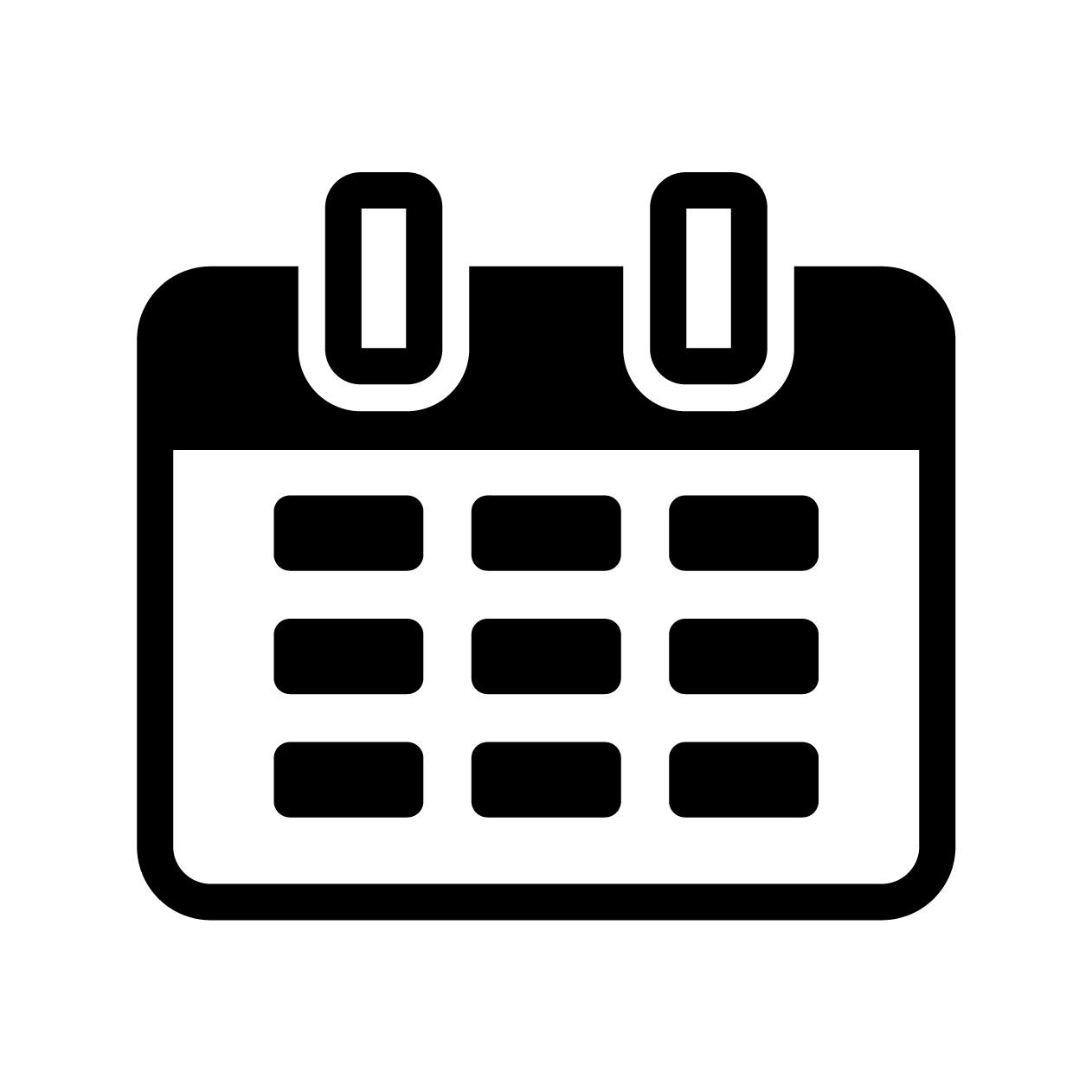 その他黒の単色で構成された、シンプルなカレンダーのアイコンイラストです。太めのラインとフラットなデザインで、視認性が高く、ビジネスや私生活のスケジュール管理を象徴する素材として最適です。広告、SNS、WebサイトのUIパーツ、バナー、チラシ、プレゼン資料、ブログ記事の見出し画像など、幅広い媒体でご活用いただけます。背景は白地で、カットアウト素材として扱いやすい構成になっています。日付や予定、月間行事のイメージに。