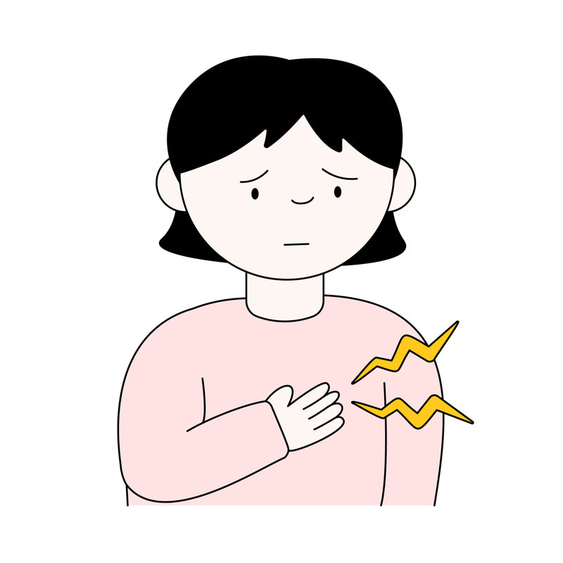 胸の痛みを感じる(動悸)女性の無料カラーイラスト
