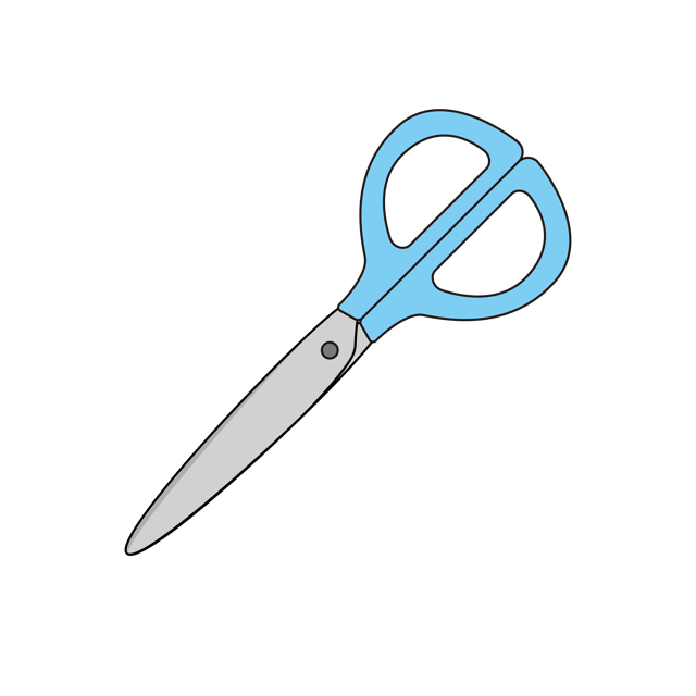 青い持ち手のハサミを、閉じた状態で描いたイラスト素材です。太めの主線と爽やかなカラーが特徴で、用途に合わせて使い分けが可能です。文房具や工作、事務用品、学校教育、手芸などのテーマに最適です。広告、SNS、Webサイト、バナー、チラシ、プレゼン資料、ブログ記事の挿絵など、幅広い媒体のデザイン素材として、はさみや文具のイメージに是非ご活用ください。