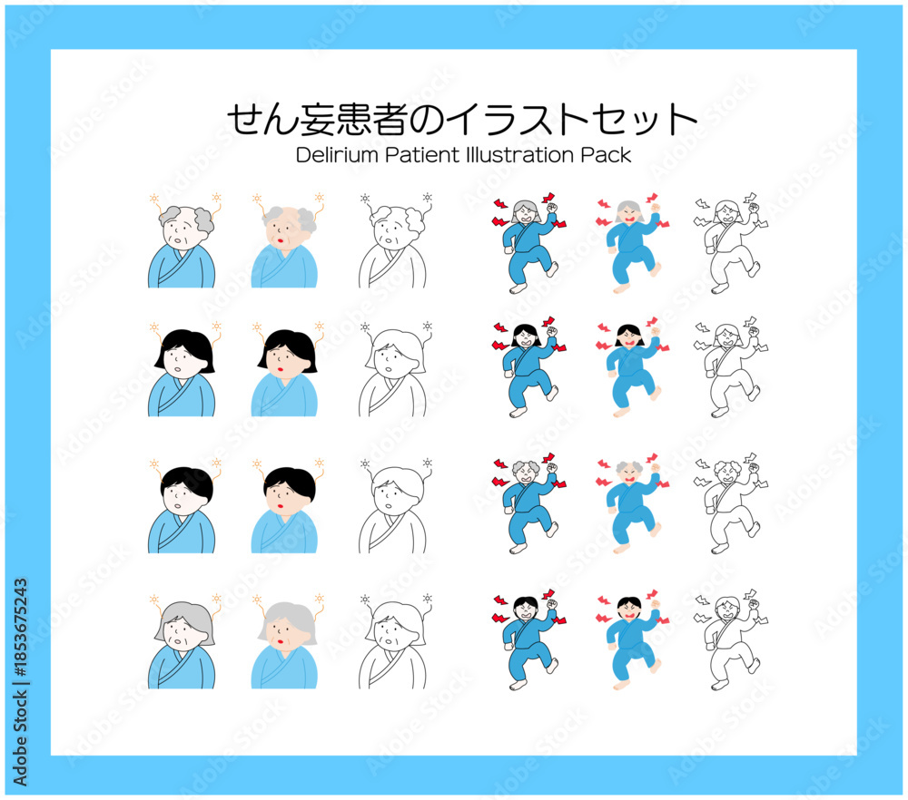 せん妄の症状イラストセット|不穏(そわそわ)と低活動(ぼんやり)の人物表現・やさしいフラット素材 Stock ベクターをダウンロードし、Adobe Stock で類似のベクターを探しましょう。