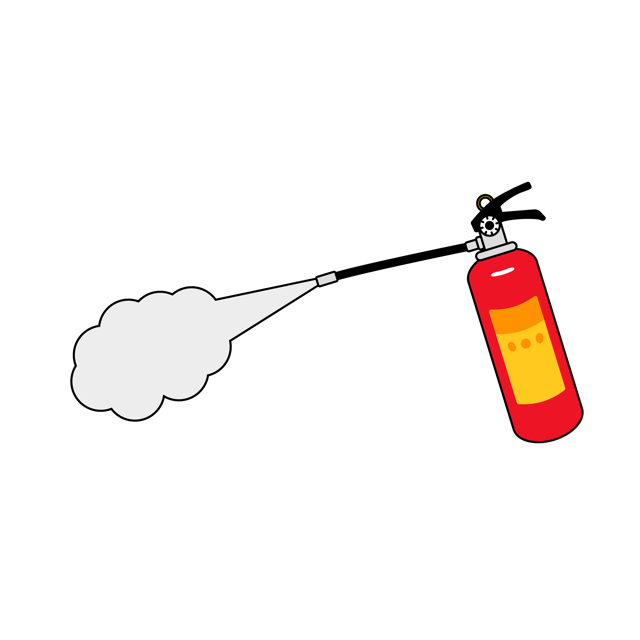火災時の初期消火に欠かせない消火器のイラスト素材です。消火剤を放射している様子と、通常の状態、線画版の3パターンをセットにしました。防災訓練の告知チラシ、消防設備の点検案内、避難経路図の作成など、安全管理に関する幅広い用途に最適です。シンプルで視認性の高いフラットデザインを採用しており、Webサイトやマニュアル、看板のアイコンとしても使いやすい仕様です。しょうかき、ボウサイ、fire extinguisher