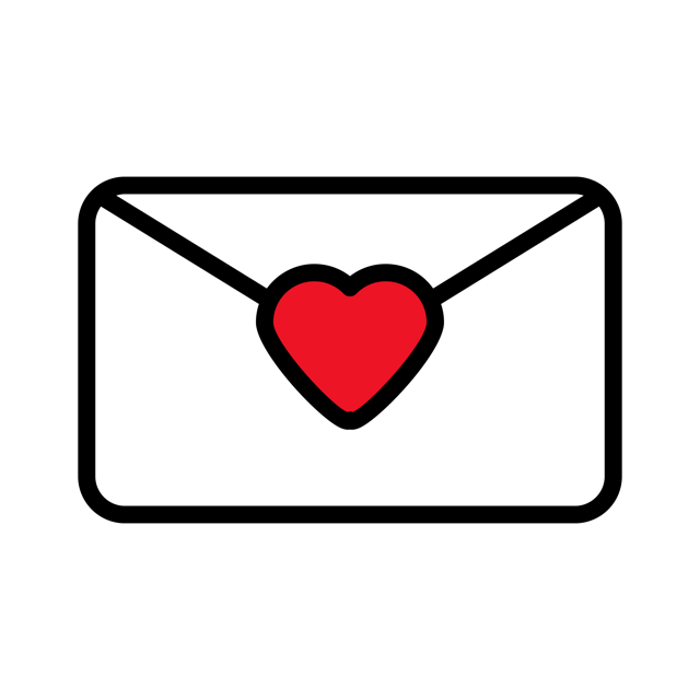 その他中央に赤いハートのシールがあしらわれた、シンプルで可愛らしい封筒のカラーアイコン素材です。太めの黒い輪郭線を用いたキャッチーなデザインで、メッセージ、ラブレター、招待状、メール、告白、感謝といったポジティブなコミュニケーションを象徴します。Webサイトのお問い合わせボタン、SNSのダイレクトメッセージ用UI、バレンタインやウェディング関連の広告、チラシのワンポイントなど、想いを伝えるシーンに最適です。