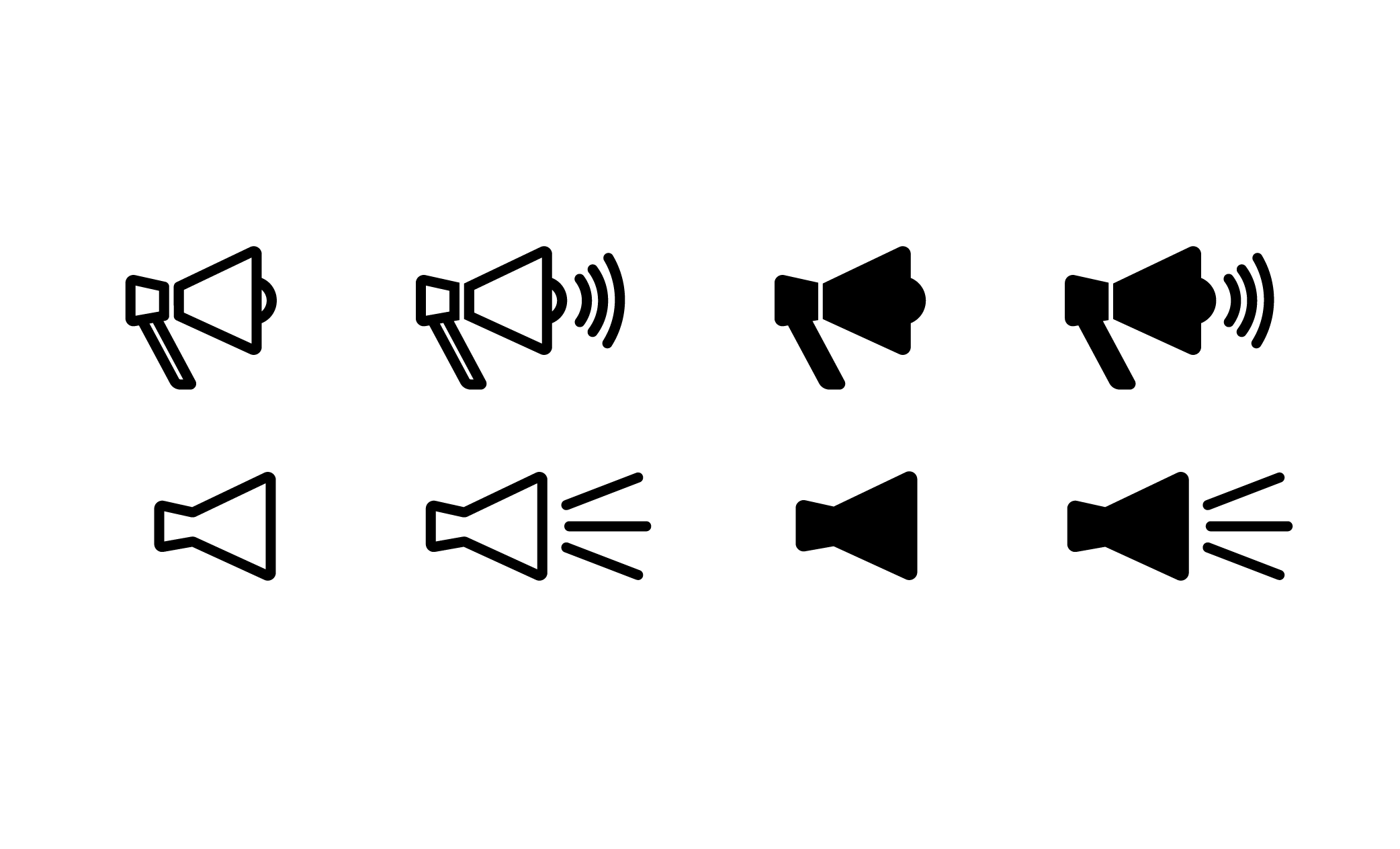 メガホンのアイコンセットの商用利用可能な無料イラストです。お知らせなどのイメージにご利用ください。