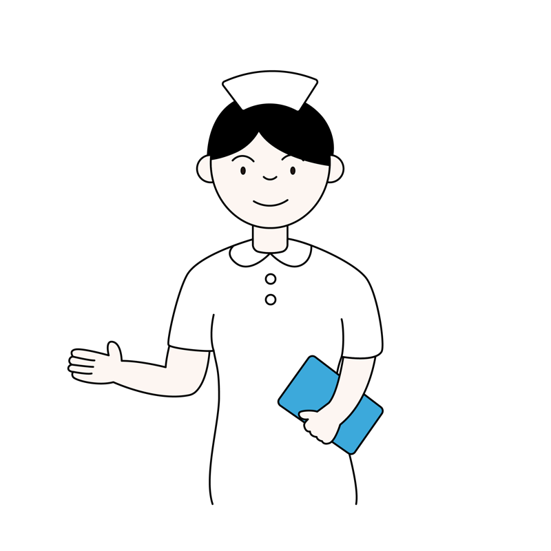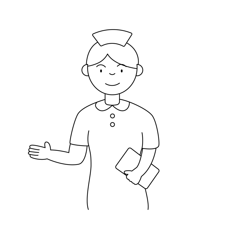 笑顔で案内や誘導を行う看護師の女性を描いた、異なるスタイルのイラスト素材をまとめたものです。はっきりしたカラー、モノクロの線画、優しいソフトタッチの3つのバリエーションがあり、媒体やデザインのトーンに合わせて最適なものを選べます。病院、クリニック、介護施設などの受付案内、診察の流れの説明、健康診断の告知など、医療・福祉に関連するあらゆる広報物やWebコンテンツに幅広く対応可能です。