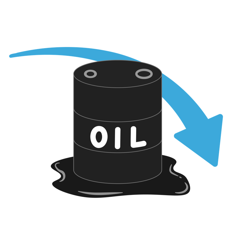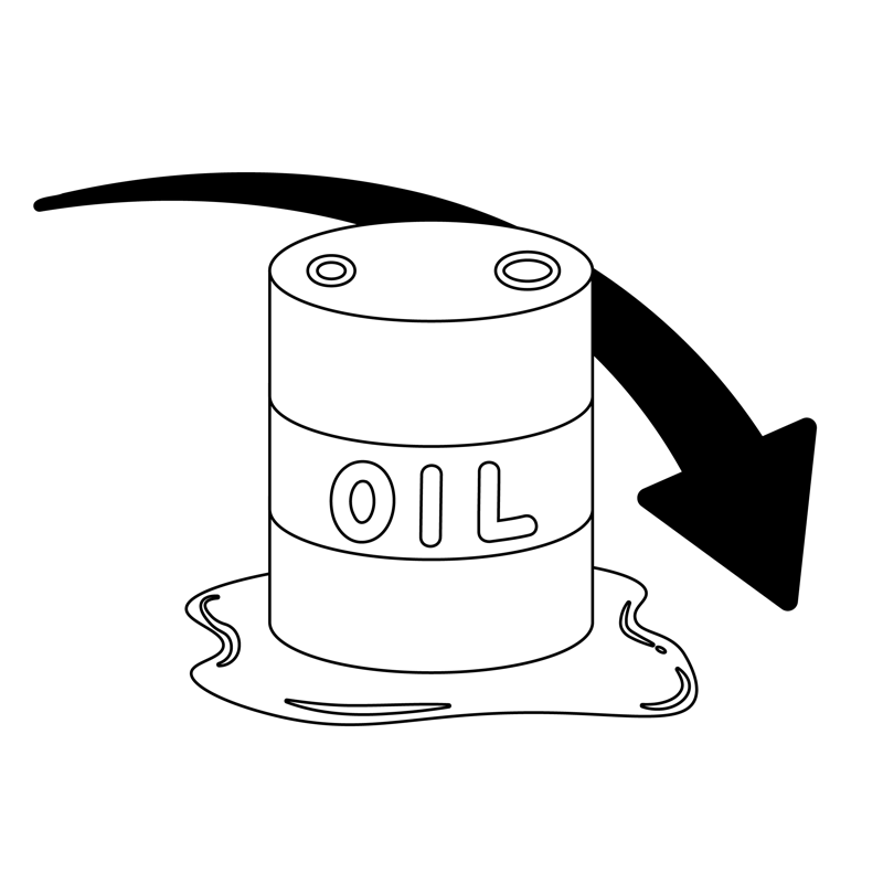 原油価格の下落や石油相場の値下がりを表現したイラストのバリエーションです。標準的なカラー版、印刷に適したモノクロ(白黒)版、現代的なフラットデザイン(主線なし)版の異なるスタイルが含まれています。ニュース、経済レポート、教育用スライド、Webコンテンツなど、媒体のトーンに合わせて最適なスタイルを選択可能です。エネルギーコストの変動や世界経済の動向を分かりやすく図解するためのアイコンとして重宝します。