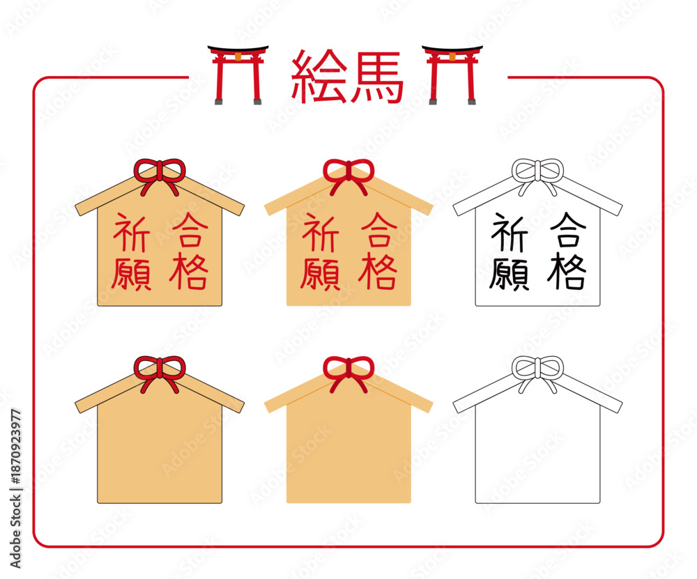 鳥居と絵馬のデザインパーツ詰め合わせ | 合格や必勝を願う受験シーズン・正月の広告用アイコンセット Stock ベクターをダウンロードし、Adobe Stock で類似のベクターを探しましょう。