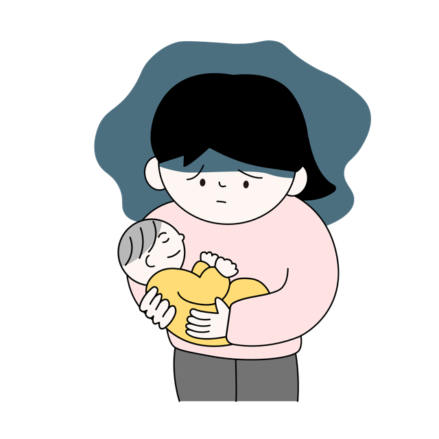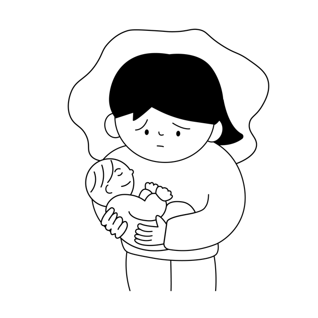 手描き風の柔らかなタッチで描かれた、赤ちゃんを抱っこして悩む母親のイラスト素材です。産後うつや育児ストレス、マタニティブルー、女性のメンタルヘルスをテーマにしたコンテンツに最適です。カラー版、表情違い、線画版のバリエーションが含まれており、Web記事、SNS投稿、医療系バナー、行政の相談窓口チラシ、育児雑誌、プレゼン資料など、幅広い用途でご活用いただけます。子育ての悩みや不安を視覚的に伝える素材として便利です。
