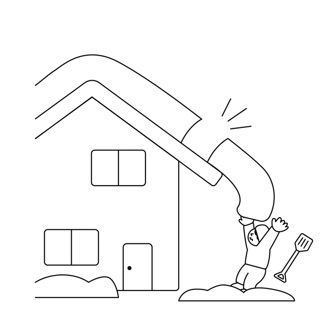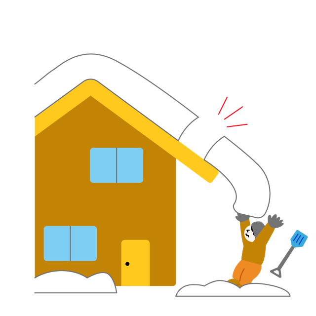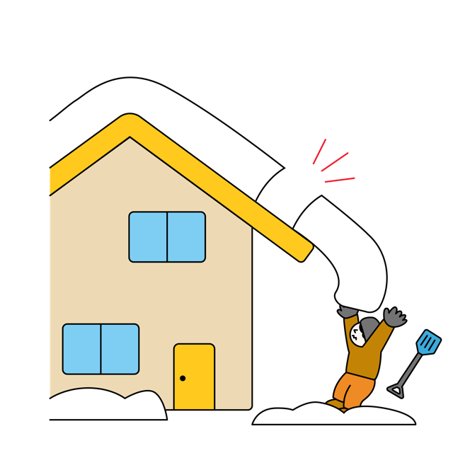 冬の豪雪地帯や寒冷地で発生しやすい、屋根からの落雪事故を描いたイラスト素材です。雪下ろしや除雪作業中に屋根から滑り落ちてきた雪に人物が巻き込まれる危険なシーンを表現しています。カラー、トーン違い、線画の3パターンがセットになっており、自治体の防災パンフレット、安全教育のマニュアル、ニュース記事のアイキャッチ、WEBサイトの注意喚起など、雪害対策の啓発活動に幅広く活用いただけます。