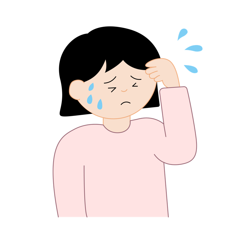 不安な表情で冷や汗を流し、頭を押さえて困っている女性のイラストセットです。カラー、モノクロ、主線なしの3パターンを収録しており、用途に合わせて選択可能です。メンタルヘルス、ストレス、パニック障害、自律神経の乱れ、更年期障害のホットフラッシュなどの医療・ヘルスケア分野に最適です。夏の暑さやトラブルへの焦り、悩み相談のアイキャッチにも活用いただけます。平仮名:じょせい,ふあん,あせり 片仮名:ストレス,パニック,バリエーション 英語:woman,anxiety,sweating,set