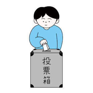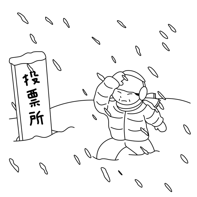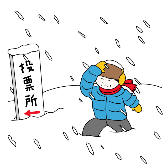 吹雪の中で投票所に向かう人の無料カラーイラスト